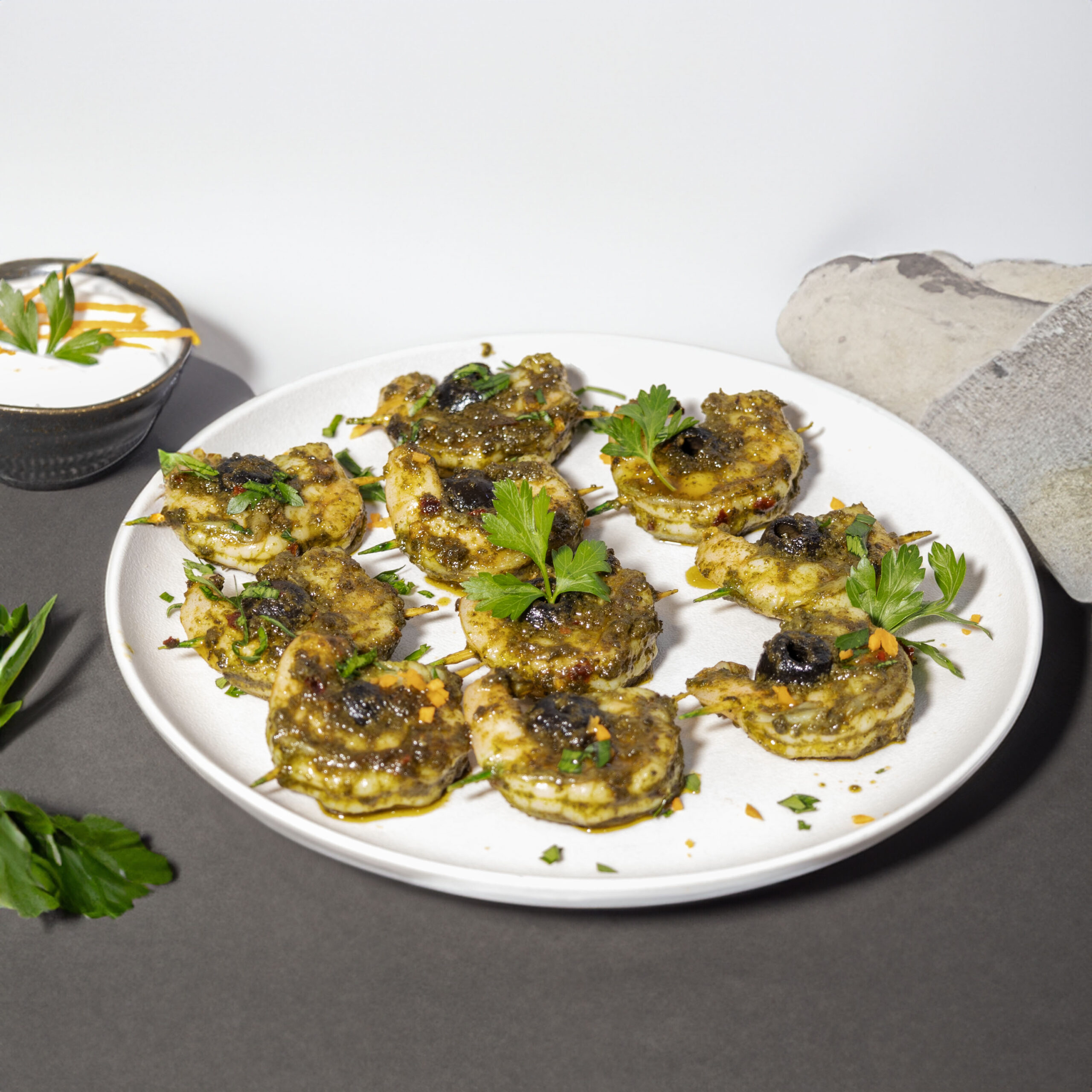Fresh Shrimps Jumbo Olivet Skewer offers a delicious combination of succulent jumbo shrimp and vibrant olives, expertly threaded onto a skewer for easy cooking. Each shrimp is carefully selected for its size and freshness, creating a perfect balance of tender seafood and briny olive flavors.